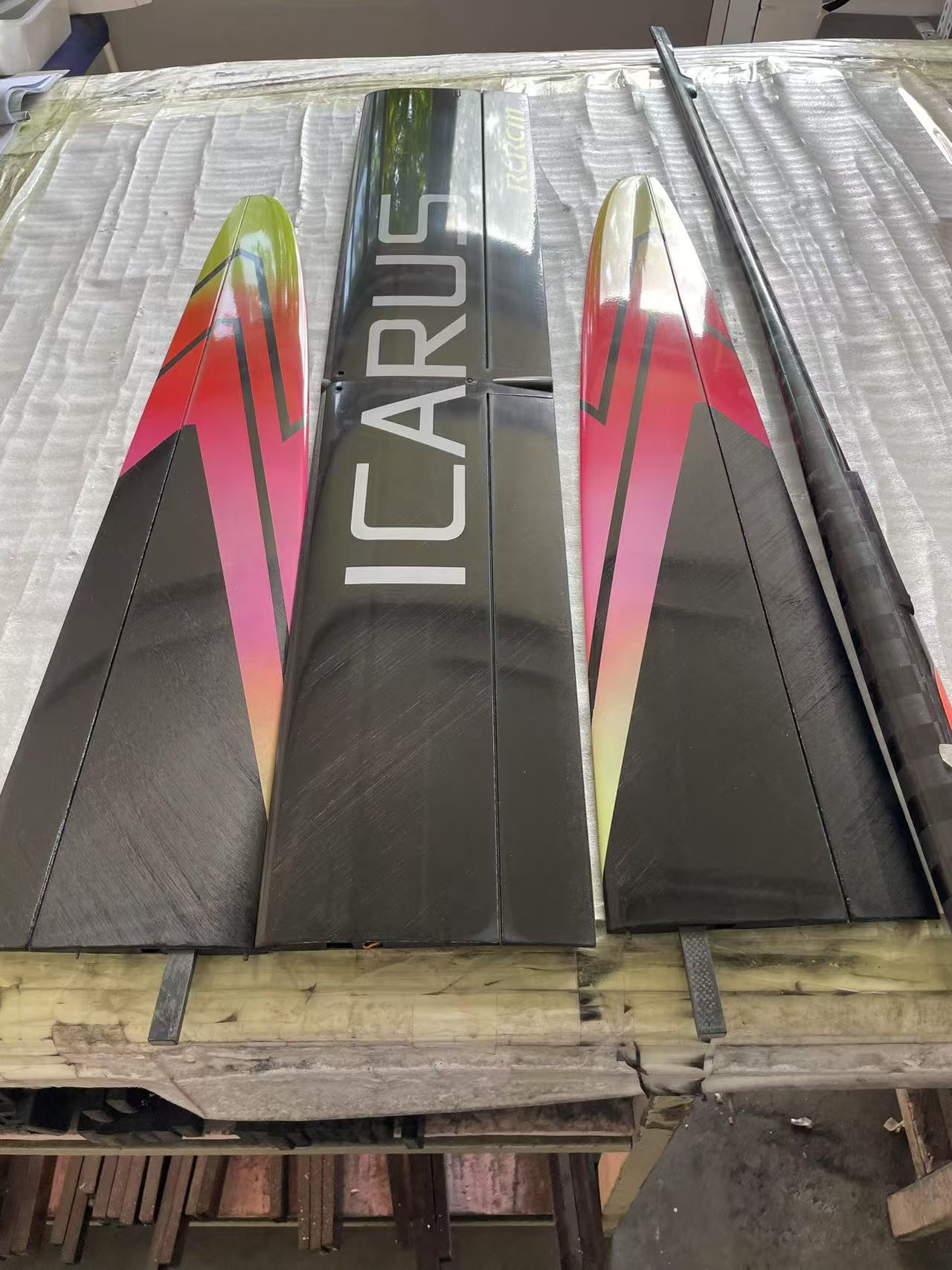 Icarus is a newly designed F5J thermal glider, it was produced with CW carbon fabric, made in aluminum alloy mold, using PMI foam technology makes it in light weight and high strength, three-pieces wings, easy to carry, suitable for leisure flight or F5J competition, very cost-effective. It likes a brave man who flies to the sun, it is a symbol of freedom, strength and courage.